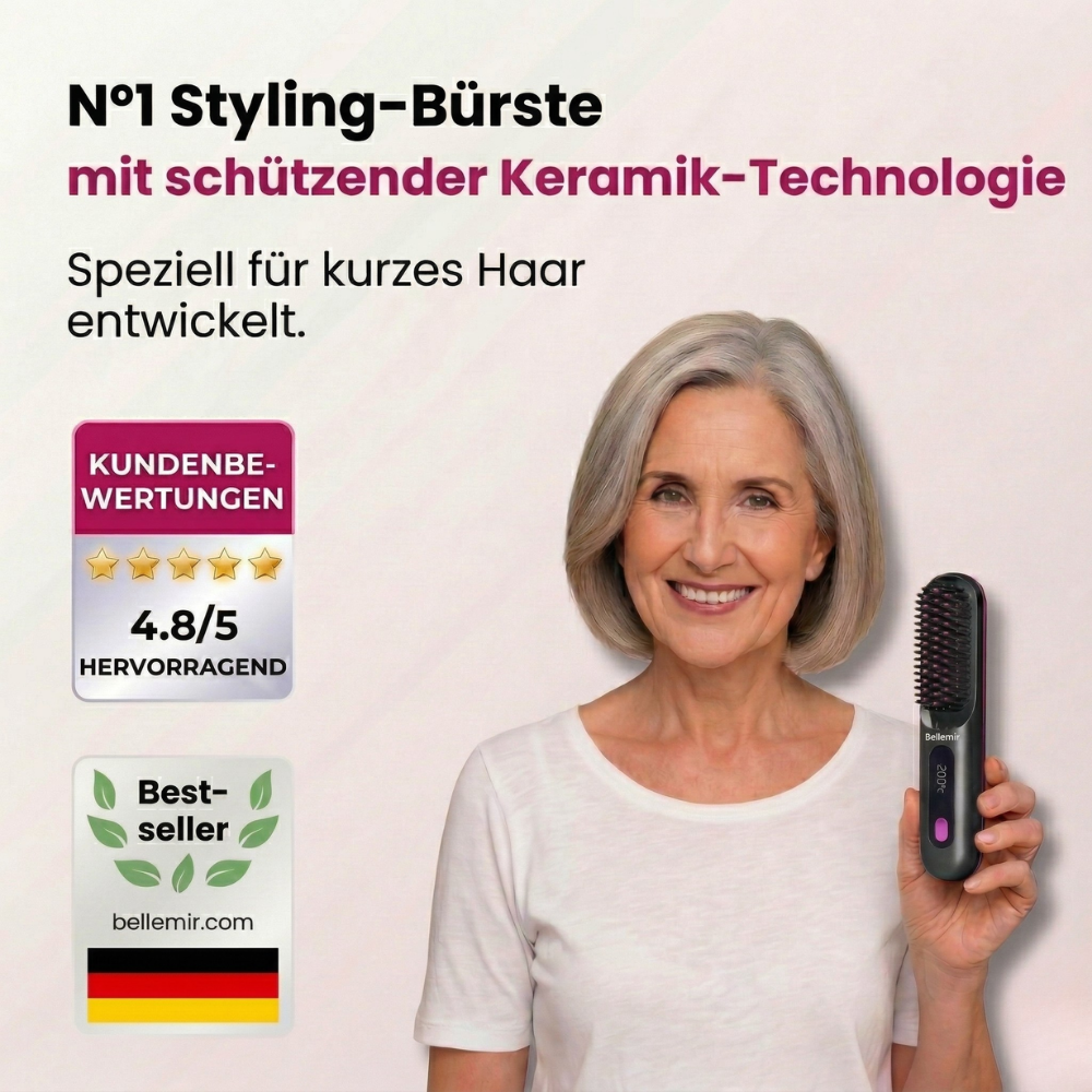 Die Bellemir-Bürste wurde speziell für kurzes Haar entwickelt: schnelles Styling im Alltag – ohne Ziehen, ohne Reizung der Kopfhaut