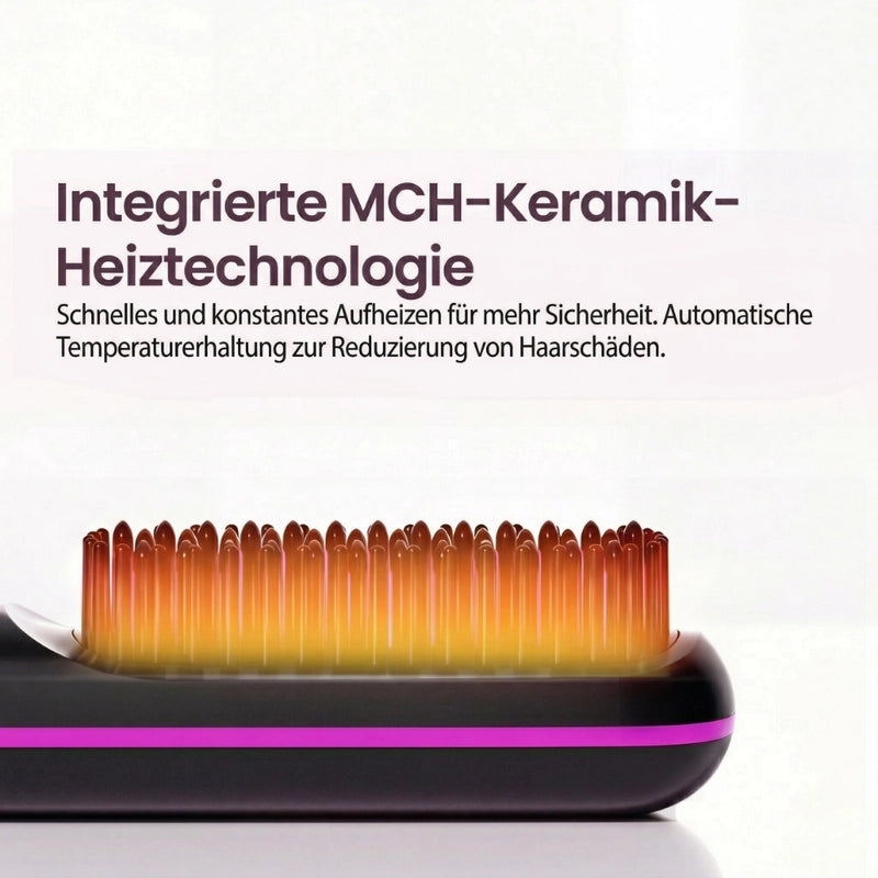 Nein. Die MCH-Keramiktechnologie verteilt die Wärme gleichmäßig — ohne Hitzespitzen. Wähle 160 °C für feines Haar — Hunderte von Kundinnen mit feinem Haar nutzen sie täglich, ohne negative Auswirkungen.